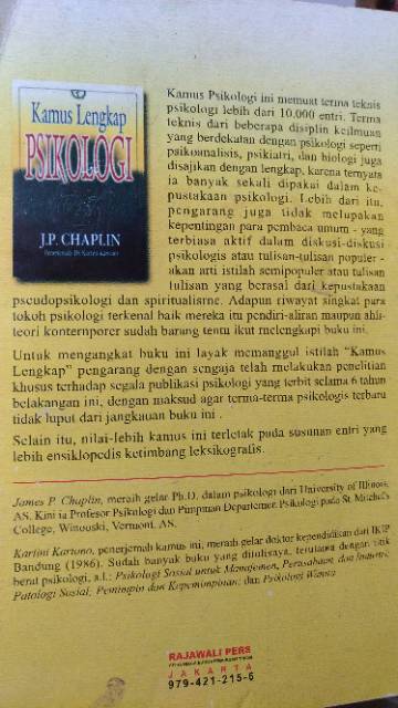15 x 23 cm tahun terbit: 2009 buku asli penerbit rajagrafindo persada divisi rajawali pers . Free ongkir & bisa cod. Buku kamus lengkap psikologi jp chaplin, rp70.000. Terima teknis dari beberapa disiplin .